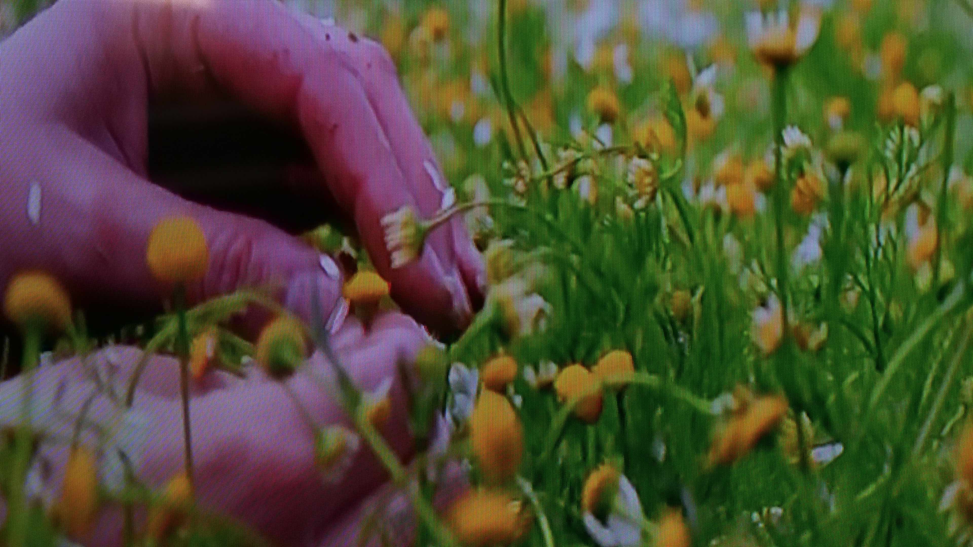 Si bien, Hari no correspondía exactamente a la original, su interacción con los humanos y las sensaciones que estos experimentan la volvían cada vez más-que-humana. Existe una escena en la película en que los tripulantes de Solaris se reúnen en una sala que evoca al pasado, a la vida en la Tierra: libros, un busto de Sócrates, un globo terráqueo, pinturas en las paredes. Una de ellas capta la atención de Hari y la cámara nos permite seguirla en detalle: se trata de Los cazadores en la nieve (1565), de Pieter Brueghel el Viejo. Inmersa en la meditación sobre su existencia, Hari contempla la pintura como una alegoría que encapsula las complejidades de la vida humana en la Tierra, invitando a una reflexión sobre el significado de la existencia. Esta escena transmite al espectador la inteligencia con que Solaris estudia y aprende rasgos humanos para luego replicarlos y reinterpretarlos. Esta mirada introspectiva y detenida se vincula con “Ciento ochenta mil mejillones, un gaviotín” (Javiera Sánchez), “Poética de la erosión y un extracto del río” (Francisca Hernández), “Jichi” (Claudia Müller) y “Falso farol” (Carlitos P. Muñoz) obras que interrogan las representaciones convencionales del paisaje y subvierten el glitch como principio de apertura hacia nuevas posibilidades.